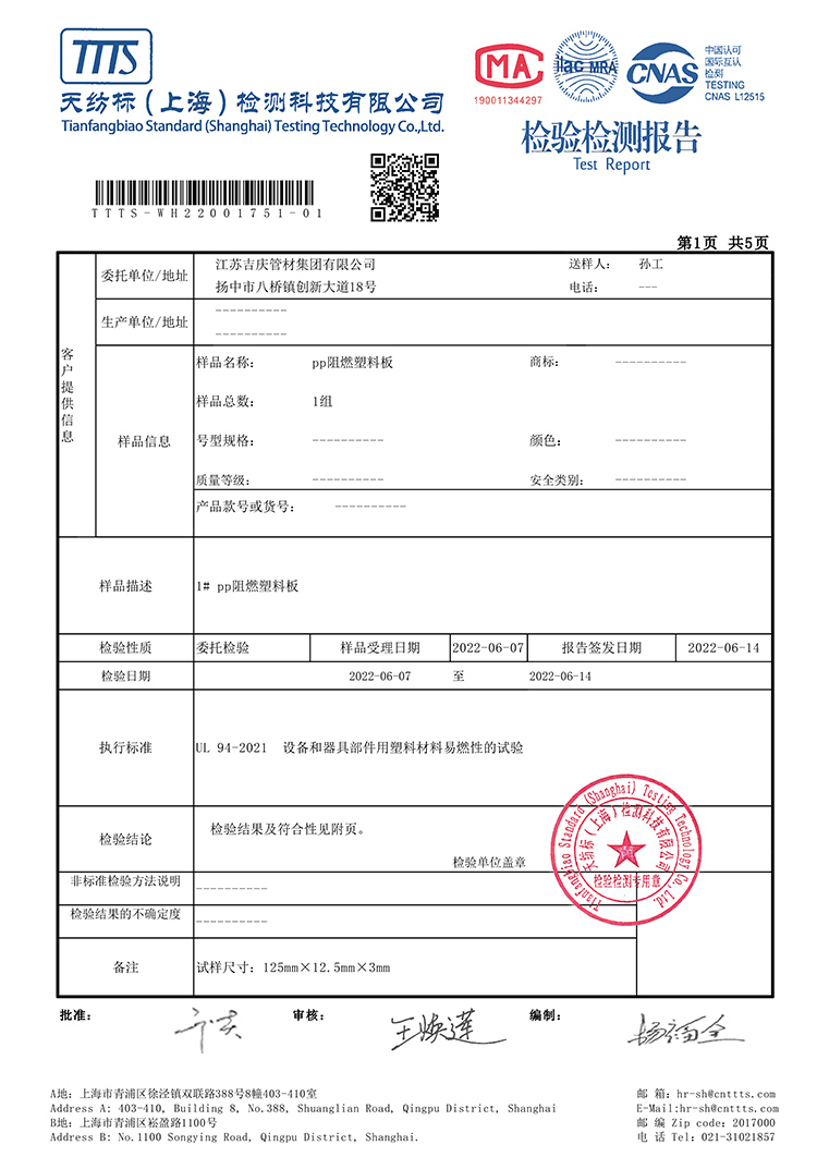 PPH管質(zhì)檢報告